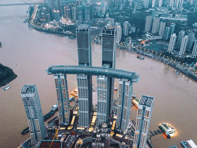 - Trung tâm thương mại Raffles City: Đây là biểu tượng kiến trúc hiện đại tiêu biểu của thành phố Trùng Khánh, tọa lạc tại khu bến triều thiên môn, nơi hợp lưu của sông Trường Giang và sông Gia Lăng. Công trình do kiến trúc sư Moshe Safdie thiết kế, gồm 08 tòa tháp cao tầng được kết nối bởi hành lang trên không " the Crystal" độc đáo - điểm nhấn kiến trúc nổi tiếng toàn cầu.